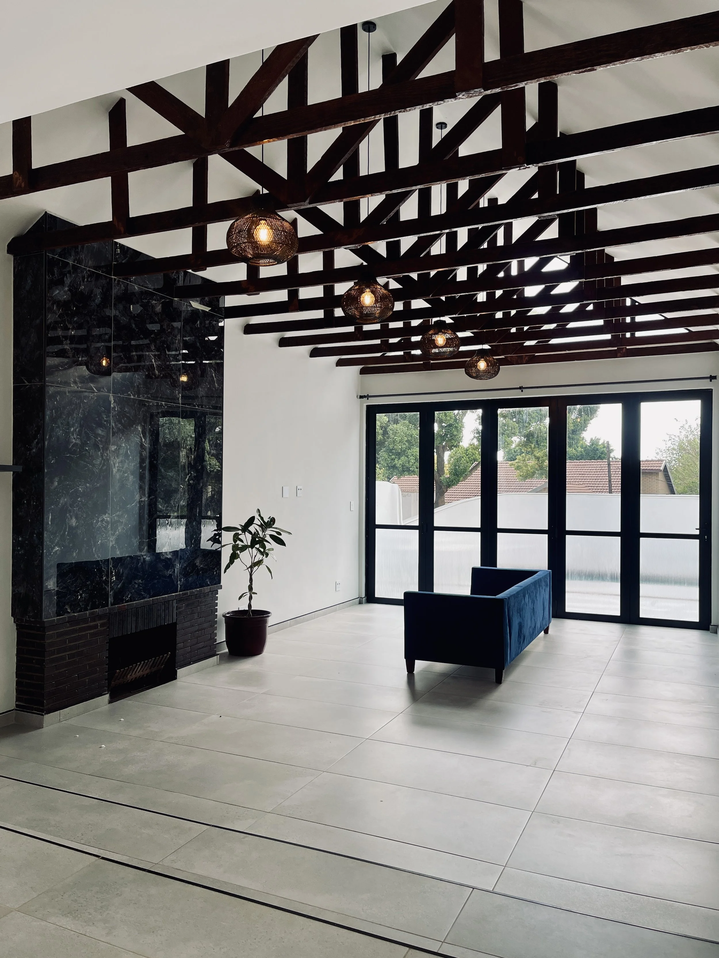 Located in the verdant suburbs of Johannesburg, this transformation project breathes new life into what was once a dark, hollow shell. The design reimagines the space as a series of light-filled volumes layered with depth, material richness, and spatial progression.